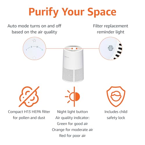 Amazon Basics Air Purifier for Home and Office, With 3-Stage Filtration, HEPA Filter With Activated Carbon, 3 Speeds, Timer, Sleep Mode (32db), Energy Star Certificate, Covers Up to 1067 Sq ft, White